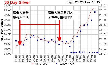 在8月19日的微信報告中,我提到“2013年7月-8月初,低迷不振的白銀市場暗潮湧動,摩根大通在期貨市場中悄悄地狂收白銀實物。”並配發了下麵這張圖片: